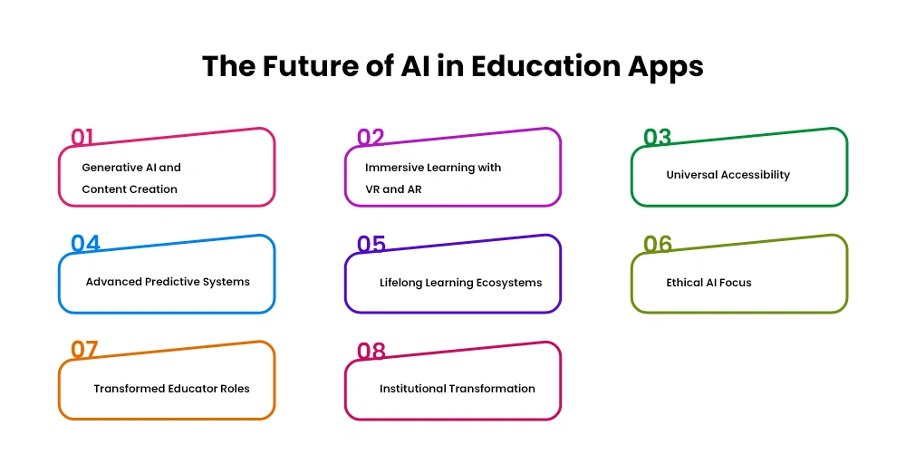 Emerging technologies and evolving pedagogical understanding will shape how AI transforms education in coming years. These trends suggest a future where artificial intelligence becomes increasingly integrated into every aspect of teaching, learning, and institutional operations.